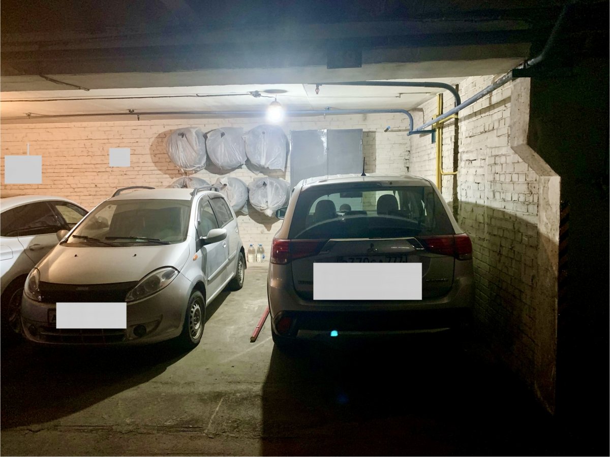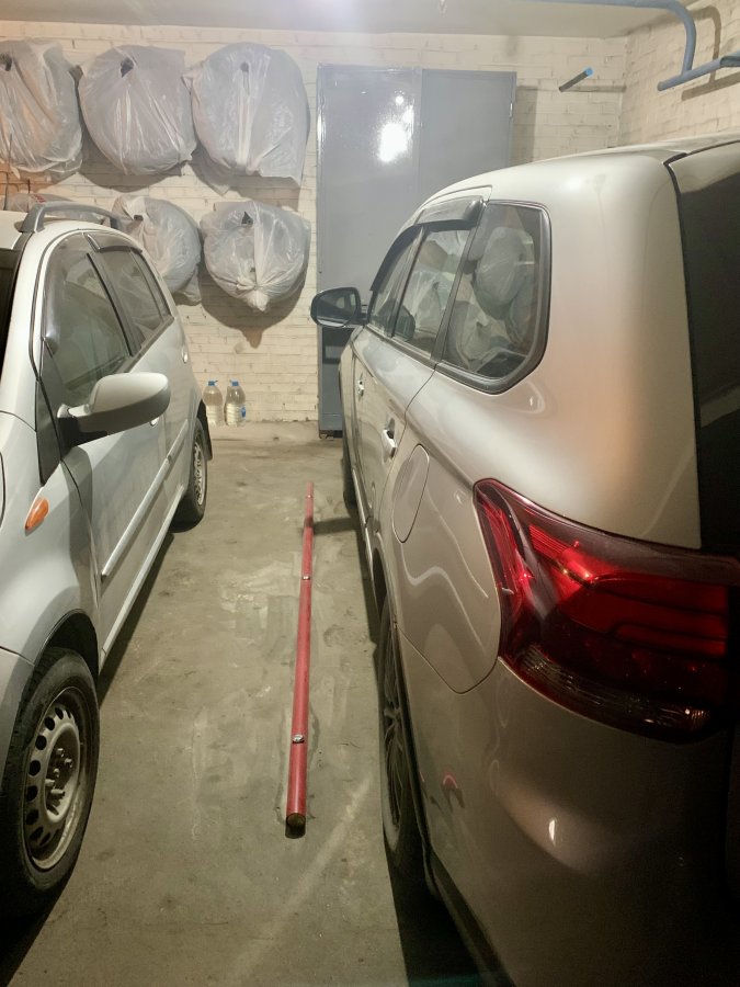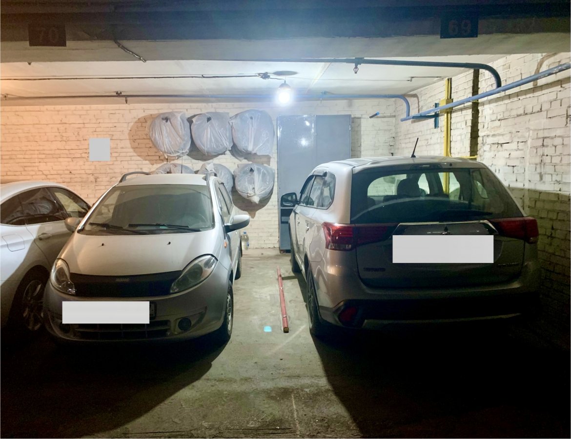 Машиноместо удобно расположено на этаже, на машиноместе установлен шкаф для хранения, штыри для хранения колес, хорошее освещение.